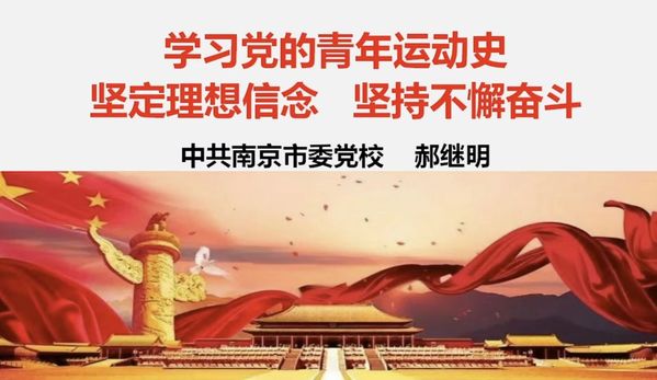 为庆祝中国共产主义青年团成立100周年,弘扬五四精神,厚植爱国情怀。五四当天,全校七百多名师生相聚“云端”,共同聆听了中共南京市委党校郝继明教授主讲的“信仰公开课”《学习党的青年运动史 坚定理想信念 坚持不懈奋斗》专题讲座。
