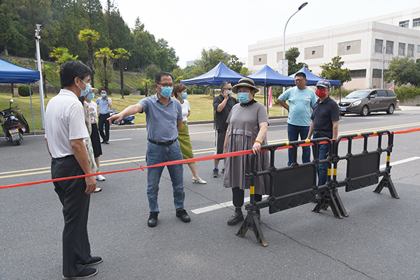 江北新区管委会副主任林其坤一行来520夫妻 检查疫情防控工作