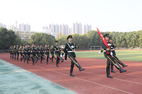 10月1日清晨,由校团委主办的“国旗下的告白”升国旗仪式在学校田径场举行。英姿飒爽的国旗护卫队迎着朝阳,满怀热情,以整齐划一、铿锵有力的步伐护送国旗进场,当雄壮有力的《义勇军进行曲》响彻校园时,鲜艳的五星红旗冉冉升起,迎风飘扬,全场弥漫着庄严肃穆的气息,在场的每一个人向国旗行注目礼,表达对祖国无限热爱和崇高敬意。