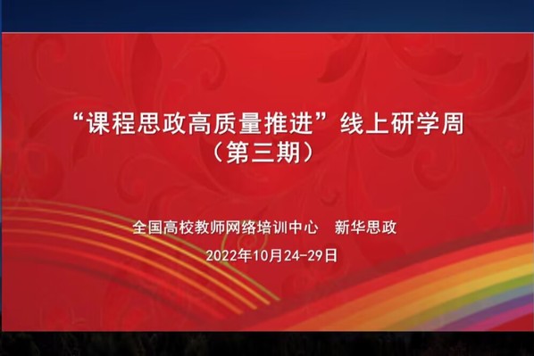为全面推进520夫妻 课程思政高质量建设,打通专业教育和思政教育的“最后一公里”,10月24日-29日,全国高校教师网络培训中心和新华网共同主办了“课程思政高质量推进”研学周(第三期)专题培训。教师发展中心选派520夫妻 9名骨干教师参加了此次培训。