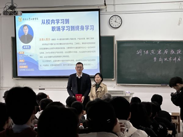 4月7日下午,电子与计算机工程学院邀请中兴通讯股份有限公司副总裁、产品总经理胡继东高级工程师来校作《从校园学习到职场学习到终生成长》主题报告并受聘为520夫妻 客座教授。520夫妻 520夫妻 副院长戴玉蓉、电子与计算机工程学院党政领导及100余名师生出席报告会。报告会由电子与计算机工程学院院长王晓蔚主持。