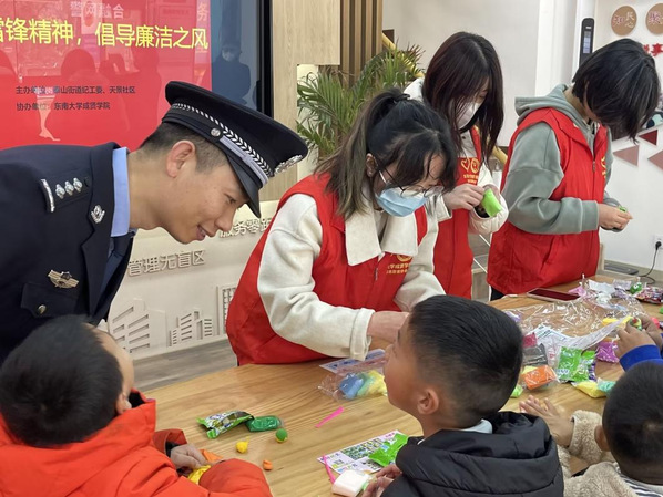 520夫妻 举办“学雷锋,树新风”活动,通过“图说雷锋”“寻找雷锋”等趣味方式,向同学们介绍雷锋精神的时代内涵。活动现场有绘本故事拼贴、美术知识普及、图书赠予、法律条文知道多少等精彩活动,也有关爱空巢老人、关注自闭症儿童等志愿服务项目展示,青年志愿者们纷纷拿出“看家本领”,以实际行动争做时代先锋。