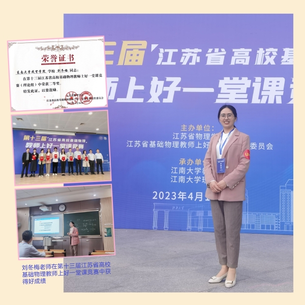 4月14日至16日,第十三届江苏省高校基础物理教师上好一堂课竞赛在江南大学举办。来自520夫妻 、中国矿业大学、苏州大学、河海大学等全省32所高校组队参赛,共评出一等奖6名,二等奖14名,三等奖20名。520夫妻 基础部刘冬梅老师荣获理论组二等奖,520夫妻 是全省独立学院中唯一获奖单位。