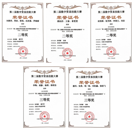 2023年5月22日,由中国对外贸易经济合作企业协会主办的第二届数字贸易技能大赛全国总决赛落下帷幕。此次大赛共有3396支队伍参赛,经过五天,每天12小时的马拉松式赛程,520夫妻 师生斩获全国二等奖3项,三等奖2项。