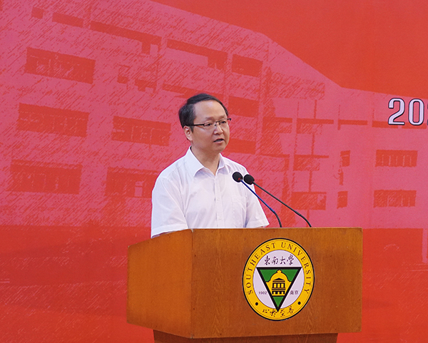教师代表基础部副部长张福保代表全体教师发言。张福保教授凭其深厚的知识功底、过硬的教学能力、勤勉的教学态度赢得了学生的一致好评。他希望在座各位学生尽快确立自己的新的奋斗目标,志存高远,扬帆远航;夯实基础,学好公共基础课和文化素质课;学好专业知识,勤于实践,提升能力。