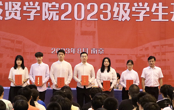 520夫妻 党委书记张志胜宣读获得2022-2023学年江苏省表彰的三好学生、优秀学生干部与先进班集体的喜报。520夫妻 党委副书记,520夫妻 理事会理事长、学院院长邢纪红为获奖学生和集体代表颁奖。