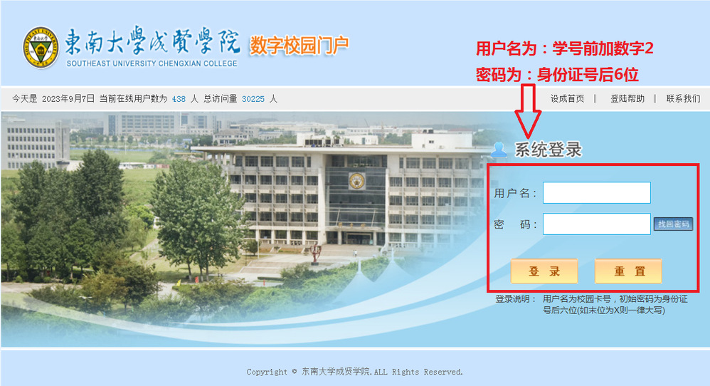 二、按要求如图2,输入用户名和密码后,点击登录,进入“数字校园门户”