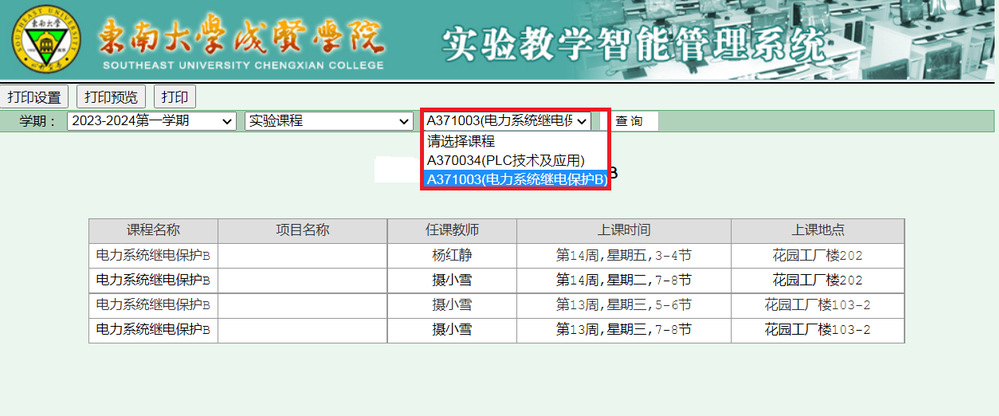 图6 实验教学智能管理系统中显示的课程课表