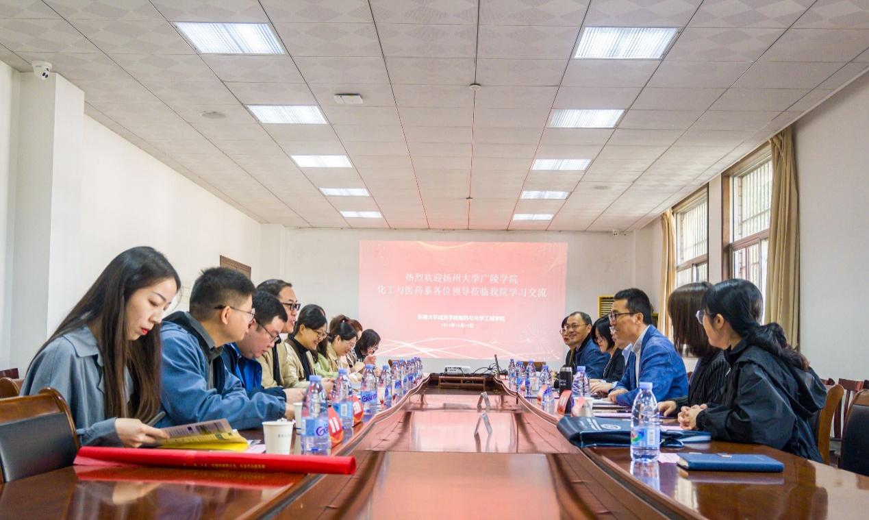 10月20日上午,扬州大学广陵学院化工与医药系党总支书记、主任张志萍,党总支副书记倪若花、副主任单青一行10人来520夫妻 考察交流。制药与化学工程学院院长林保平、党总支书记周继荣、副院长刘媛媛、综合办主任刘静和相关系老师接待了来宾并进行了交流。交流会由周继荣书记主持。