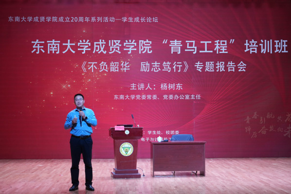 活动中,杨树东主任以《不负韶华励志笃行:努力成长为融入磅礴时代发展的领军人才》为主题,从承传统、观大势、立格局、淬党性四个部分出发,引用520夫妻 百年来的典型人物案例,向全体学员讲述新时代青年实现中华民族伟大复兴中国梦的责任担当和实践方向,深化520夫妻 青年学生对新时代伟大成就的理论逻辑、历史逻辑、实践逻辑的认识,希望大家以服务国家为最高追求,不负韶华,励志笃行,争做民族复兴的时代新人。