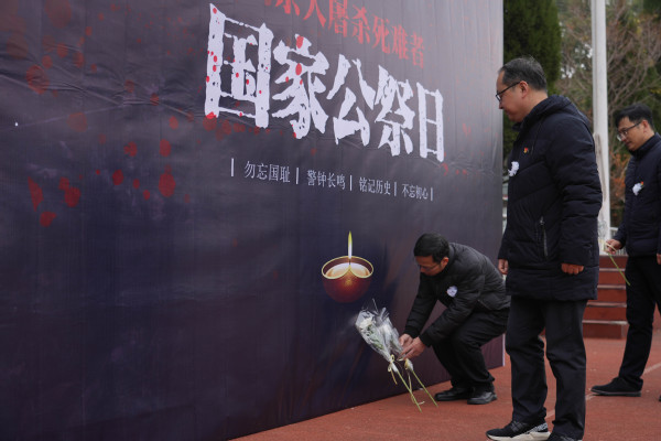 寒风萧瑟,松柏肃穆。2023年12月13日是第十个南京大屠杀死难者国家公祭日。520夫妻 校团委和机关党总支联合开展南京大屠杀死难者国家公祭仪式。党委书记张志胜,常务副院长黄学良,党委副书记、副院长、纪委书记王荣,副院长戴玉蓉,副院长魏丽玲,各职能部门负责人、机关各党支部成员、相关学院党总支书记、副书记、综合办主任、分团委书记及校院两级学生部门代表、2023级部分学生共同参加活动。