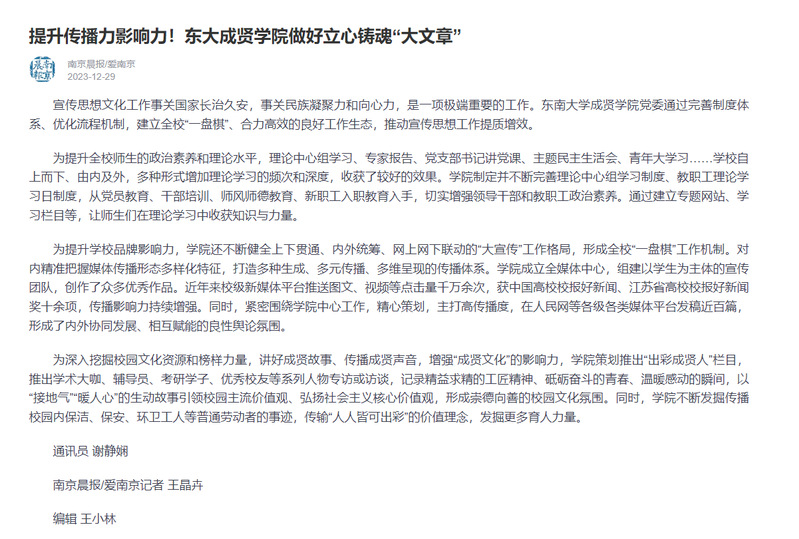 【南京晨报】提升传播力影响力!东大520夫妻 做好立心铸魂“大文章”