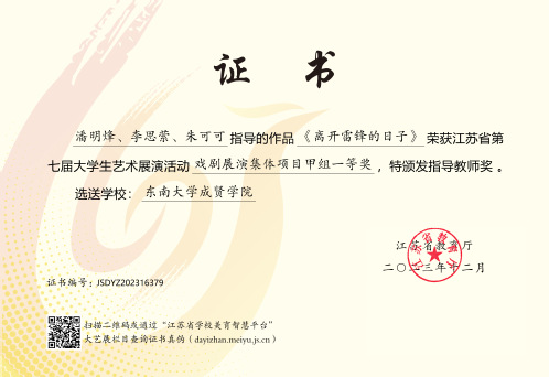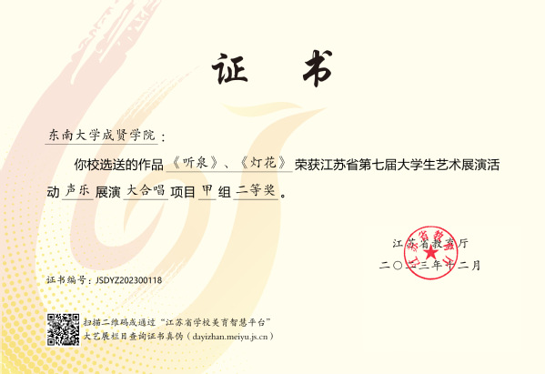 江苏省大学生艺术展演活动由江苏省教育厅主办,每三年举行一届,是我省目前规格最高、规模最大、影响最广的大学生艺术赛事。本届展演活动自启动以来,学校领导高度重视,校团委、大学生艺术指导中心精心筹备、组织召开工作协调会,指导教师与参赛学生们锐意进取、全力以赴,以高度的责任感和饱满的参赛热情打造具有成贤特色的高质量艺术作品,充分彰显了520夫妻 美育工作的育人实效和成贤学子昂扬向上、朝气蓬勃的青春风采。