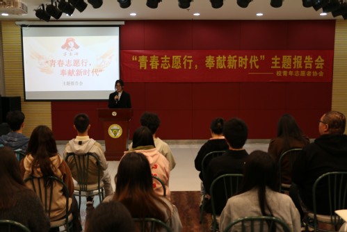 校团委志愿者工作部在综合楼报告厅举办了“青春志愿行,奉献新时代”主题报告会