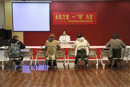 为助力520夫妻 学子顺利通过考研复试,在模拟场景中体验复试流程,通过接受专业指导和评价,了解自身不足,3月27日下午,由校团委、学校就业办、校学生会举办的“我为同学做实事”——“长风万里,一研为定”模拟考研复试活动在综合楼多功能厅307举行,活动得到文登考研的大力支持。