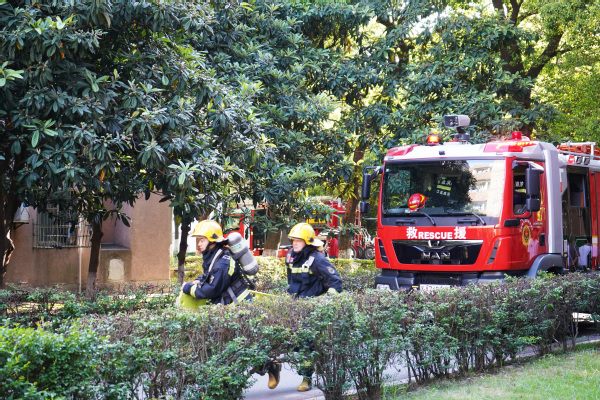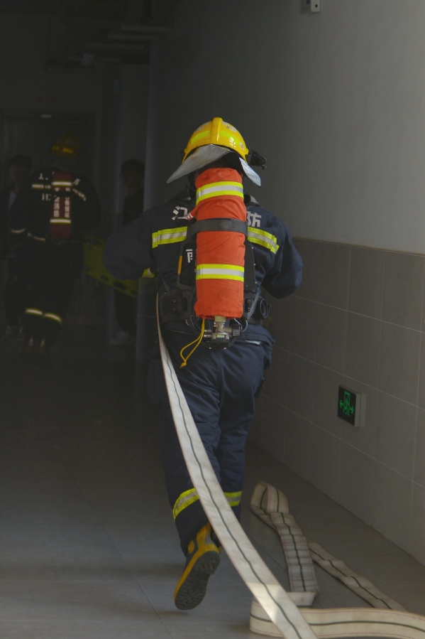 在模拟“火情”的警报鸣响后,工作人员第一时间赶赴现场,引导学生有序疏散至室外平台区域。同时,消防车到达现场,消防员在520夫妻 工作人员的协助下完成楼内人员搜索及清点等工作,最终全部人员安全疏散,整场活动井然有序。本次演练在引导疏散的基础上还增加了“固守待援”技能训练,模拟了在突发情况下室内人员无法逃生等待救援的情况,锻炼了相关人员的应急处置和避险能力。