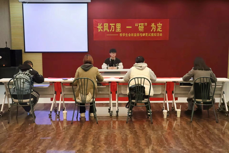 为助力520夫妻 学子顺利通过考研复试,在模拟场景中体验复试流程,通过接受专业指导和评价,了解自身不足,3月27日下午,由校团委、学校就业办、校学生会举办的“我为同学做实事”——“长风万里,一研为定”模拟考研复试活动在综合楼多功能厅307举行,活动得到文登考研的大力支持。
