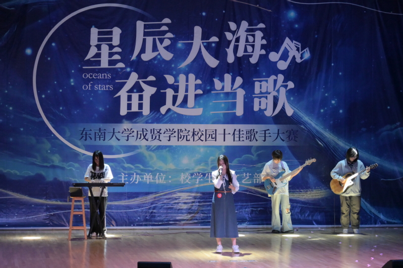 4月17日,校学生会文艺部举办的“星辰大海,奋进当歌”校园十佳歌手大赛决赛在大活313报告厅举行。中国民族男高音艺术研究会理事白云升、苏州爱乐乐团常任指挥李凯、520夫妻 学生处处长助理颜秉明、大学生艺术指导中心主任李思萦、经济管理学院辅导员肖舒匀担任评委,校团委书记、人武部部长潘明烽老师、各学院分团委书记以及选手辅导员共计700余名师生共同来到了现场观看比赛。