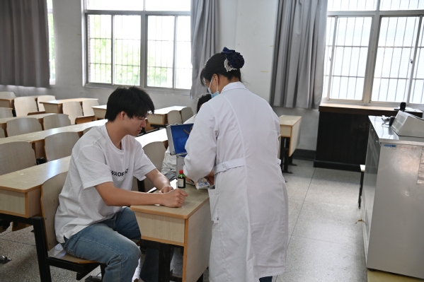 医务人员赶至现场为受伤同学做初步处理