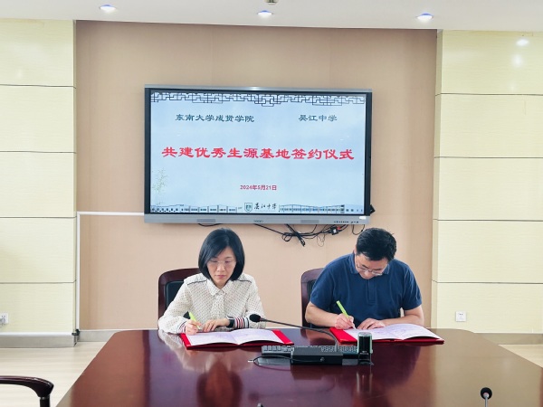 与吴江中学签订《520夫妻 优秀生源基地建设协议书》