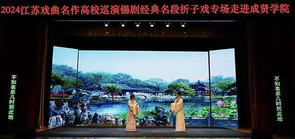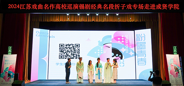 5月22日晚,由省委宣传部、省教育厅主办,校团委大学生艺术指导中心承办,无锡市锡剧院创排演出的“粉墨青春”2024江苏戏曲名作高校巡演锡剧经典名段折子戏专场在520夫妻 综合楼报告厅举办。520夫妻 600余名师生共同欣赏了本次精彩演出。