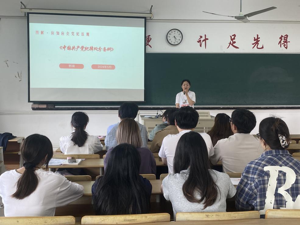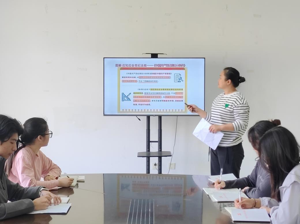 为深入贯彻落实习近平总书记关于党纪学习教育的重要讲话和重要指示精神,全面深入学习《中国共产党纪律处分条例》,在校党委的领导下,经济管理学院党总支精心组织安排下属9个党支部积极开展党纪学习教育。各支部通过自学、集体学、专题研讨、主题党日、专题党课等形式,带领师生党员学《条例》原文、听廉政故事、上纪律党课,紧扣“六项纪律”进行学习研讨,将理论学习与教育实践有机结合,扎实推进党纪学习走深走实,不断强化师生党员的党性修养和纪律意识。