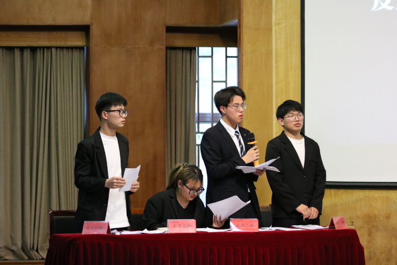 5月15日晚,由校团委主办、校学生会学习部承办的第十届“成贤杯”辩论赛决赛在真知馆报告厅举行。南京邮电大学辩论队队长邱茂林、南京信息工程大学辩论队队长范航宇、南京审计大学辩论队队长高朗硕、南京警察学院辩论队队长王一川担任本次比赛评委。校团委老师、学生副书记等200余名师生观看了比赛。