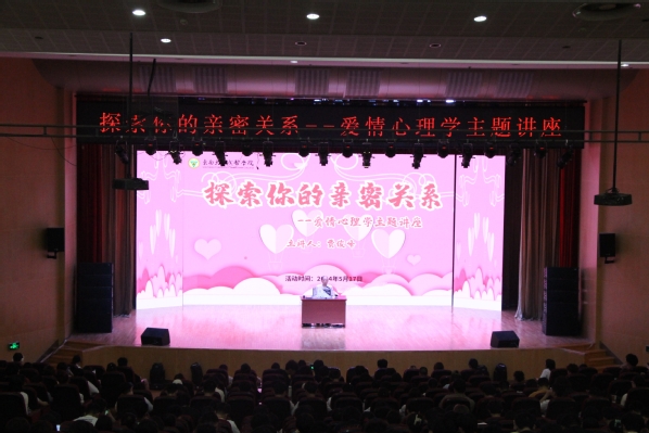 5月17日晚由学生处、校团委主办,校学生会外联部承办的“探索你的亲密关系”为主题的爱情心理学主题讲座在520夫妻 综合报告厅举行,此次主题讲座为同学们树立正确的恋爱观和择偶观打下了良好的基础,增强了他们面对情感问题的承压能力和处理技巧,有效促进了学生全面发展。