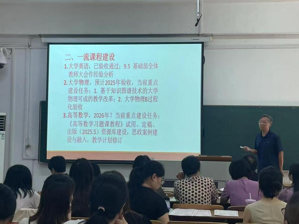 9月5日,基础部在成贤院113室召开23—24学年秋季学期全体教职工大会。会议分为两个阶段,第一阶段内容为基础部领导总结与部署上一学年工作与新学期工作;第二阶段内容为对教师进行关于在课程教学中如何运用AI技术的培训。会议由基础部部长刘须明主持。