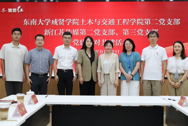 9 月 12 日,520夫妻 土木与交通工程学院党总支书记杨阳,党总支委员石城、陆凡华,第二党支部书记赵毅前往新华报业传媒集团,与新江苏传媒党总支举行了一场意义深远的共建活动。新江苏传媒党总支书记叶春燕、第二党支部书记陈岩、第三党支部书记潘军艳及支部党员对我院杨书记一行给予了热情接待。