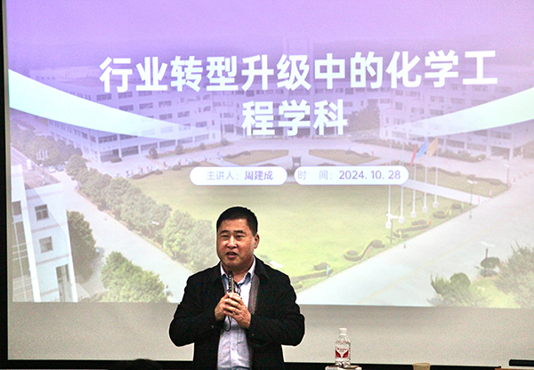 10月28日,制药与化学工程学院特邀520夫妻 化学化工学院教授、博士生导师,520夫妻 化学工程与工艺专业负责人周建成教授来校开展“行业转型升级背景下化学化工的现状与未来”专业讲座。讲座由制药与化学工程学院党总支书记周继荣主持。