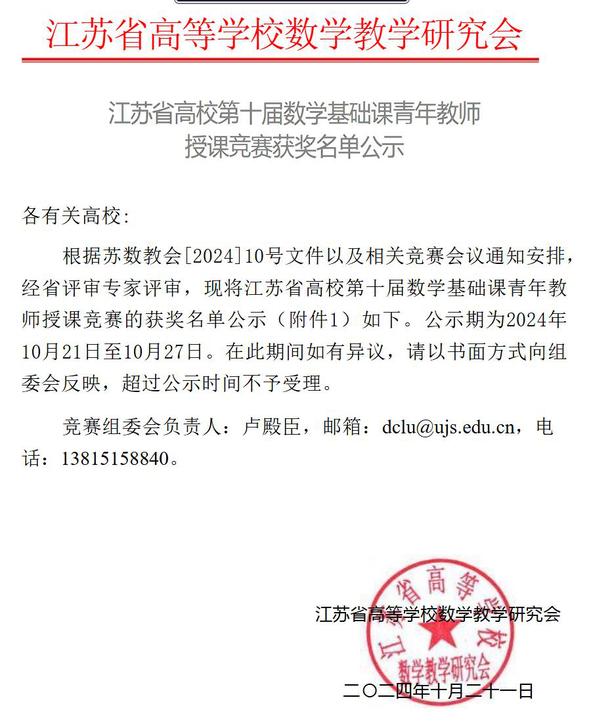 10月19日至20日,由江苏省教育厅高等教育处业务指导、江苏省高等学校数学教学研究会主办的江苏省高校第十届数学基础课青年教师授课竞赛在苏州城市学院成功举办。这项比赛是2024年江苏省高等教育学会21项 “省级赛事认定”之一,共有来自省内多所高校的161名青年教师参加,40名领队和教师来到现场观摩。赛事旨在深入推进数学基础教育改革与创新,提升青年教师的教学能力。经专家现场评审,520夫妻