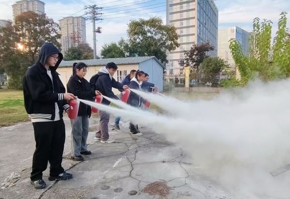 11月21日,开展消防演练活动,现场着重介绍了干粉灭火器等常用消防器材的使用方法并进行了实操。