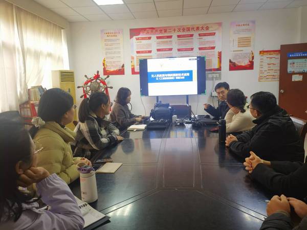 董开发老师从无人机行业应用背景、现行法律法规体系、倾斜摄影及正射摄影原理、无人机航测相关操作、智能测绘无人机实施方案等五个方面展开汇报,首先,从低空经济入手介绍了无人机行业的背景、无人机的分类和发展趋势,并讲解了现行民用无人驾驶的法律法规。随后,董老师结合大疆无人机航测设备和实际案例讲解了倾斜摄影、正射摄影的原理,激发了老师们的学习兴趣。最后,董老师分享了无人机的操作原理、倾斜摄影数据的处理和实景三维建模的流程,展示了利用无人机进行的校园整体实景建模,使老师们对新技术新知识有了更多的了解。董老师分享了无人机测绘技术在课程建设中的应用,为老师们提供了具体的操作方法和新的教学改革思路。参会老师们积极参与讨论和互动,并在研讨结束后利用无人机进行了校园地质测绘的实际操作,熟悉了无人机的作业流程,更直观地感受到无人机技术的应用效果。