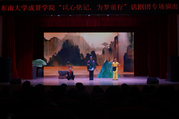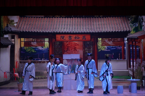 演出在小品《八十一难》中拉开帷幕。演员们将唐僧师徒在取经路上不畏艰险、执着追梦的形象鲜活地呈现在观众眼前。曲折的剧情、生动的表演,带领大家重温经典故事的同时,也深刻传达出面对困难勇往直前、坚守信念的精神力量。紧接着,《再见老师》将舞台氛围带入了深沉的情感之中。该作品聚焦师生间的真挚情谊,从学生的回忆视角出发,讲述了一位平凡而伟大的老师对学生成长产生的深远影响。演员们的表演,如涓涓细流,勾起观众对校园时光的情感共鸣。最后上演的《万松书院》以古代书院为背景,生动展现了书生们为求取功名而奋发苦读的场景,以及他们在期间发生的友情与理想的碰撞。演员们通过富有韵味的台词和优美的肢体动作,巧妙地将传统文化元素融入表演之中,为整场演出画上了圆满句号。