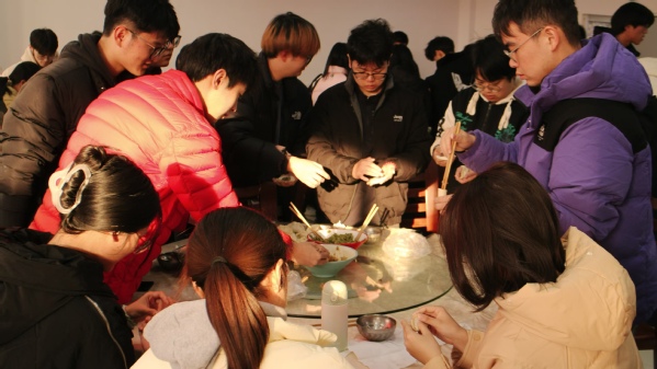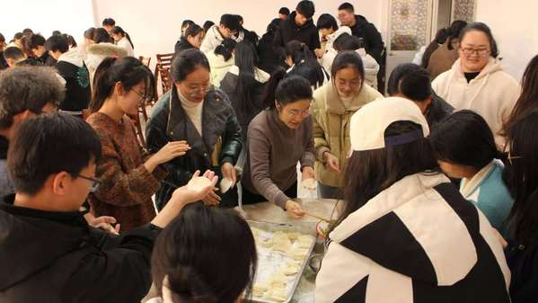 师生分工协作,干劲十足,包出一盘盘形态各异、充满创意与个性的水饺,现场欢声笑语不断。