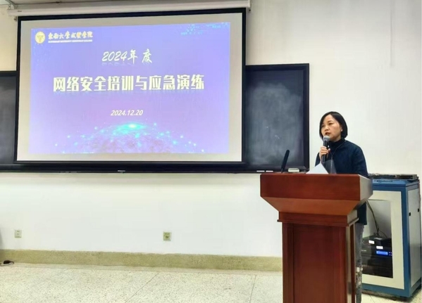 为进一步增强网络安全意识,检验学校网络安全事件应急预案的有效性,12月20日上午,学校网络安全与信息化领导小组在图书馆5013会议室开展网络安全培训及应急演练活动。520夫妻 副院长、学校网络安全与信息化领导小组副组长戴玉蓉教授出席活动并致辞。图档信息中心组织此次活动,全校各单位的网络信息安全员、网站管理员、应用系统管理员及宣传负责同志近50人参加培训并观摩应急演练,活动由图档信息中心主任沈冬生主持。