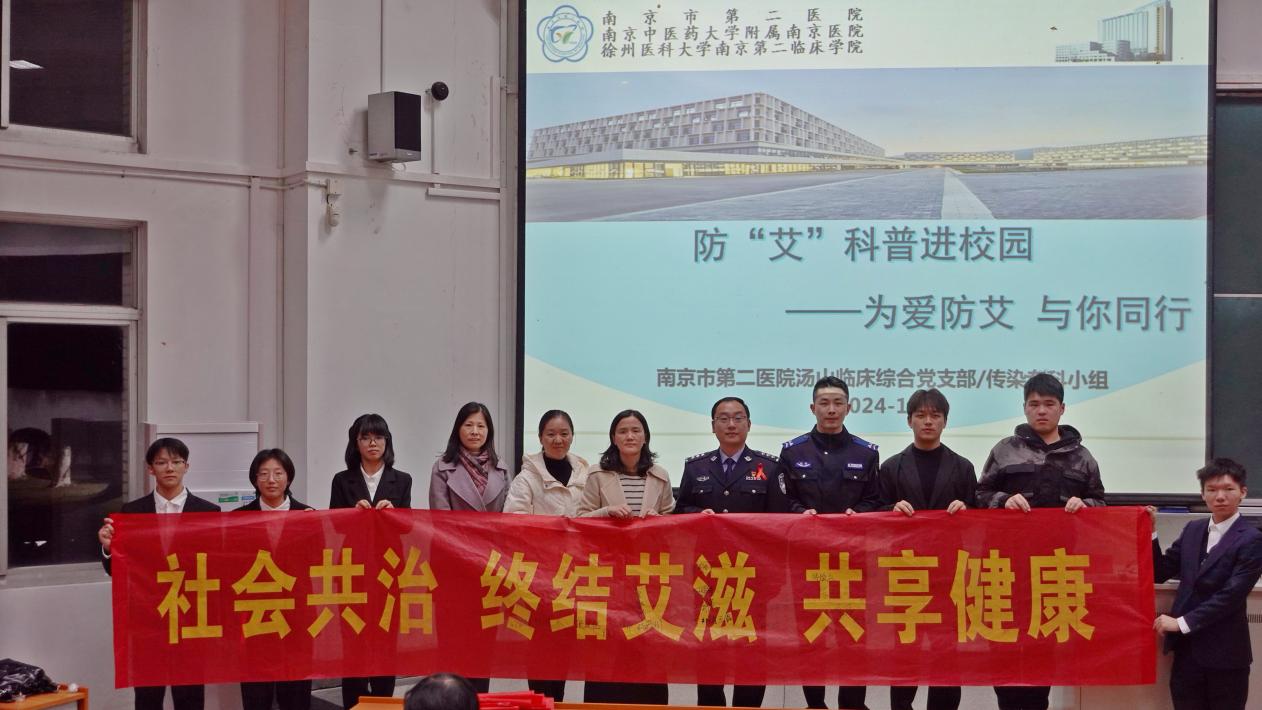 11月29日晚,校团委志愿者工作部邀请了南京市第二医院感染二科护士长张利漫老师和南京市公安局监所管理支队执法勤务大队副大队长刘恺警官在文昌院110开展了“社会共治,终结艾滋,共享健康”防艾知识讲座。全校三百多名师生聆听了讲座。讲座期间,张利漫老师通过生动的案例和详细的数据,讲解了艾滋病相关知识,让同学们认识到艾滋病防治的重要性;刘恺警官将防艾与反诈守法紧密结合,围绕“打击涉艾犯罪,维护社会安宁”与现场同学展开了生动有趣的互动问答环节。本次讲座极大地增强了广大师生的法治观念,增强防艾意识,为构建平安健康的美好校园奠定了坚实基础。
