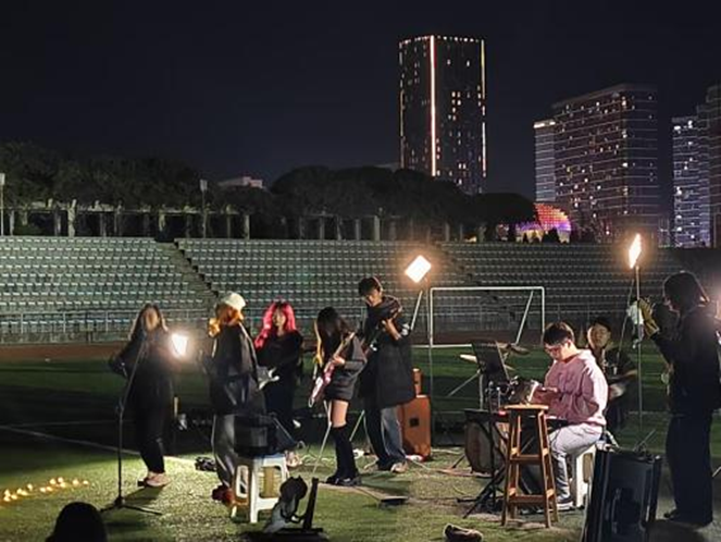 2024年11月29日晚,电声社在操场举办了‘音’为青春,‘坪’添色彩“草坪音乐会。夜幕降临,乐队成员们在灯光的映衬下陆续登场,用充满感染力的音乐和动人的旋律点燃了观众的热情。