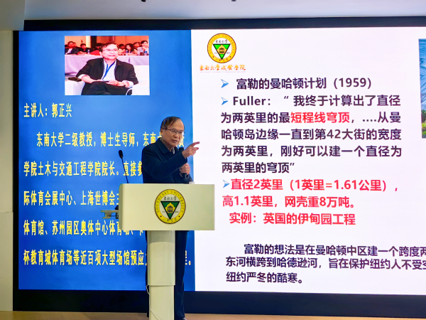 第九届亚洲冬季运动会于2025年2月7日—14日在哈尔滨成功举办,其开幕式和闭幕式均在哈尔滨国际体育会展中心举行。郭正兴院长以他在哈尔滨国家体育会展中心工程现场主持的我国首个跨度为128米的张弦梁钢屋盖预应力拉索施工实践为案例,介绍该工程技术创新和攻坚克难的详细过程及体会,并分享后续在上海世博会主题馆、新疆乌鲁木齐会展中心等超百米跨张弦梁的重大工程施工创新体会。讲座中,郭正兴院长寄语同学们在未来的大学学习、生活中要具备天马行空的梦想和追求,更要有敢为人先的勇气,平时注意关注学科交叉,强化动手能力训练,培养团队合作精神,不断提升创新素质能力,做“新时代”的“新工科”人才。