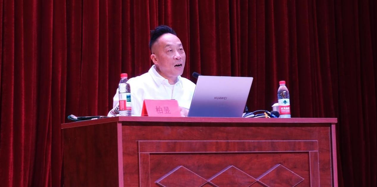 本次讲座特邀知名编剧、导演、戏剧制作人、策划人,江苏省戏剧家协会理事,南京市文化艺术基金专家评审,南京艺术学院文化产业学院特聘教授,江苏省大学生艺术团南京林业大学水杉剧社总导演柏昱教授担任主讲人。讲座主要与现场观众共同深入探讨了戏剧的文化意义与艺术本质,特别是在AI生成内容迅猛发展的当下,重新审视戏剧所具备的独特价值。