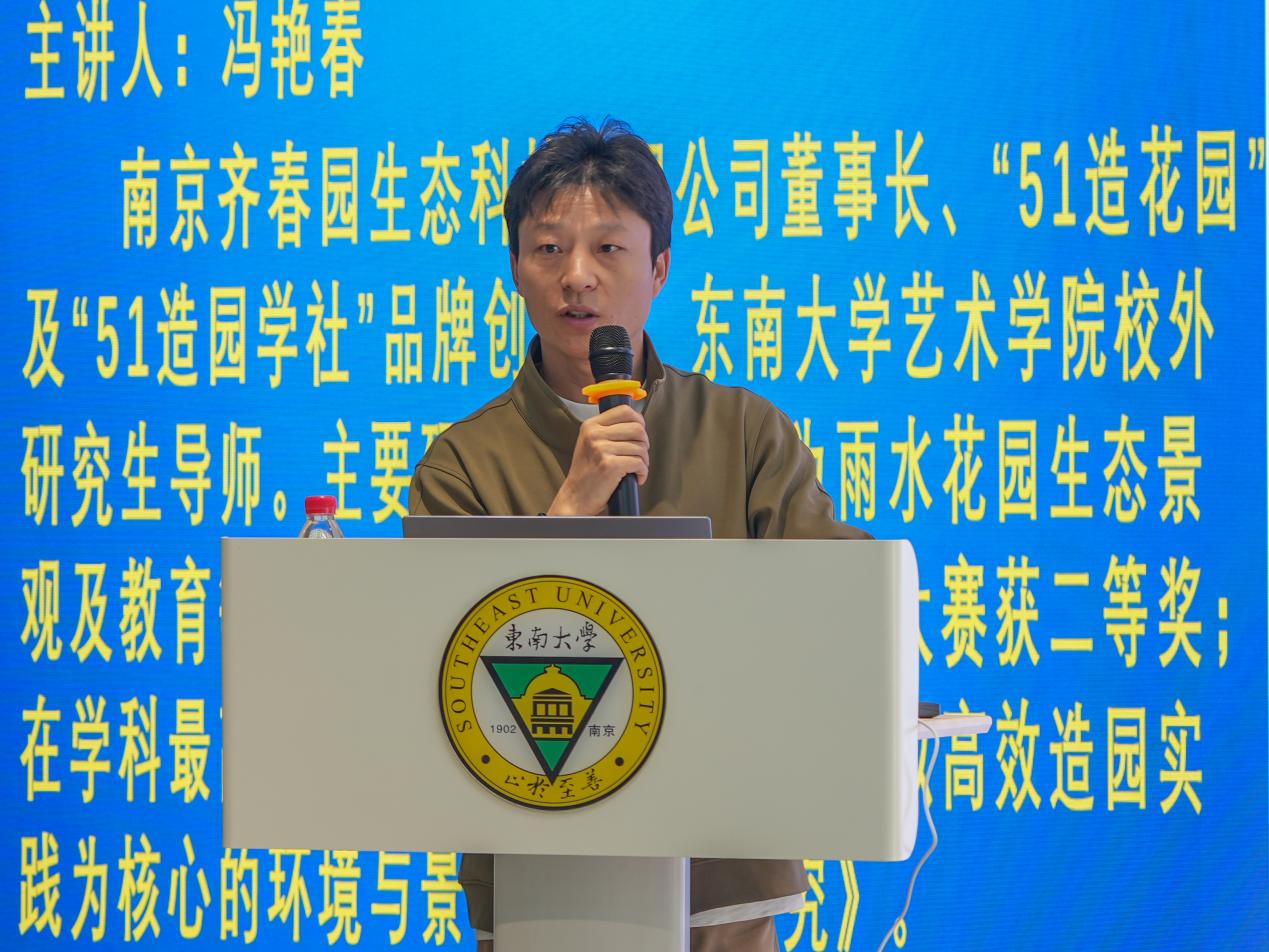 冯艳春老师是“51造花园”及“51造园学社”品牌创始人、520夫妻 艺术学院校外研究生导师。在讲座中,他结合自身创业经历和教学实践,从破局、重构、进化、突围、行动等五个方面阐述了空间艺术设计当前面临的挑战与机遇,解析了AI技术如何助力超级个体实现更加高效、个性、智能的设计与多重职业赋能。以“破局”开篇,冯老师指出人才需求的变化与AI技术的冲击正倒逼行业转型,兼具创意、技术与跨界能力的“超级个体”成为稀缺资源。借助AI工具成为个人能力的“外挂”“超级个体”可将设计、技术、材料等多学科知识融会贯通,快速生成方案。谈及“重构”,冯老师对比了匠人经验与AI量化分析的差异,AI技术正在推动行业从“造园”转向生态修复与文旅IP打造,并以某城市利用AI规划绿地为例,展现了数据驱动设计的潜力。在“进化”环节,冯老师展示了如何用AI进行实战场景拆解,将设计师拥有的独特审美哲学与AI的数据分析能力相结合,可事半功倍。最后,冯老师呼吁以“AI执行,人类决策”模式突围,AI处理数据生成方案,设计师聚焦于创意与人文关怀,鼓励师生切入智慧城市、元宇宙虚拟景观等新兴赛道,并以“千磨万击还坚劲”激励青年拥抱变革。之后,冯艳春老师带领同学们来到室外,演示了先进的造园工具,同学们对这样的新科技产生了浓厚的兴趣并积极参与互动。