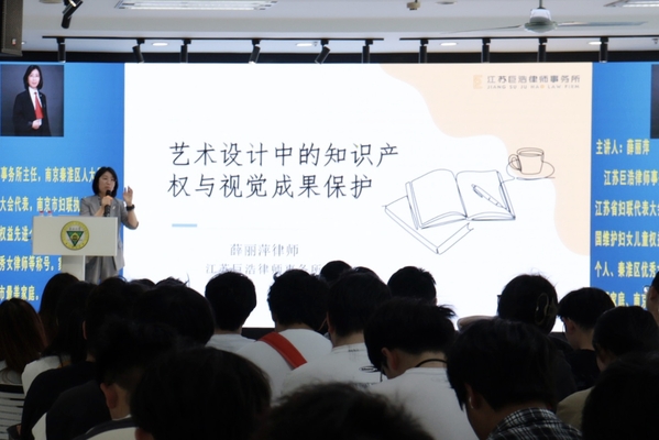 4月25日下午,由建筑与艺术设计学院主办的“艺术设计中的知识产权与视觉成果保护”专题讲座在求真·求美·创新工坊举行。学院邀请江苏巨浩律师事务所主任薛丽萍律师担任主讲嘉宾,建筑与艺术设计学院副院长王娟芬及200余名师生参加了本次讲座。