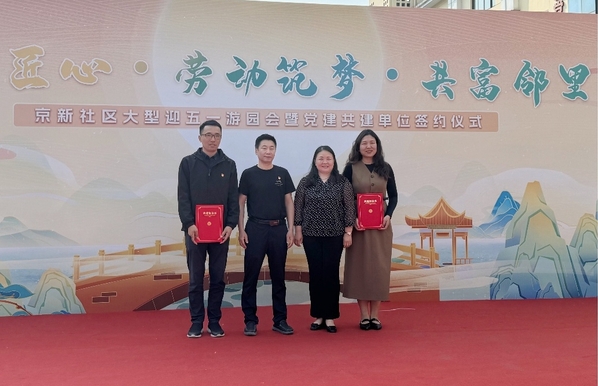 进一步深化校地合作,推动基层党建创新发展,4月28日下午,制药与化学工程学院党总支联合江北新区综合部机关党总支、中共沿江街道京新社区委员会等单位,赴京新社区邻里中心参加“古韵匠心•劳动筑梦•共富邻里”大型迎五一游园会暨党建共建单位签约仪式