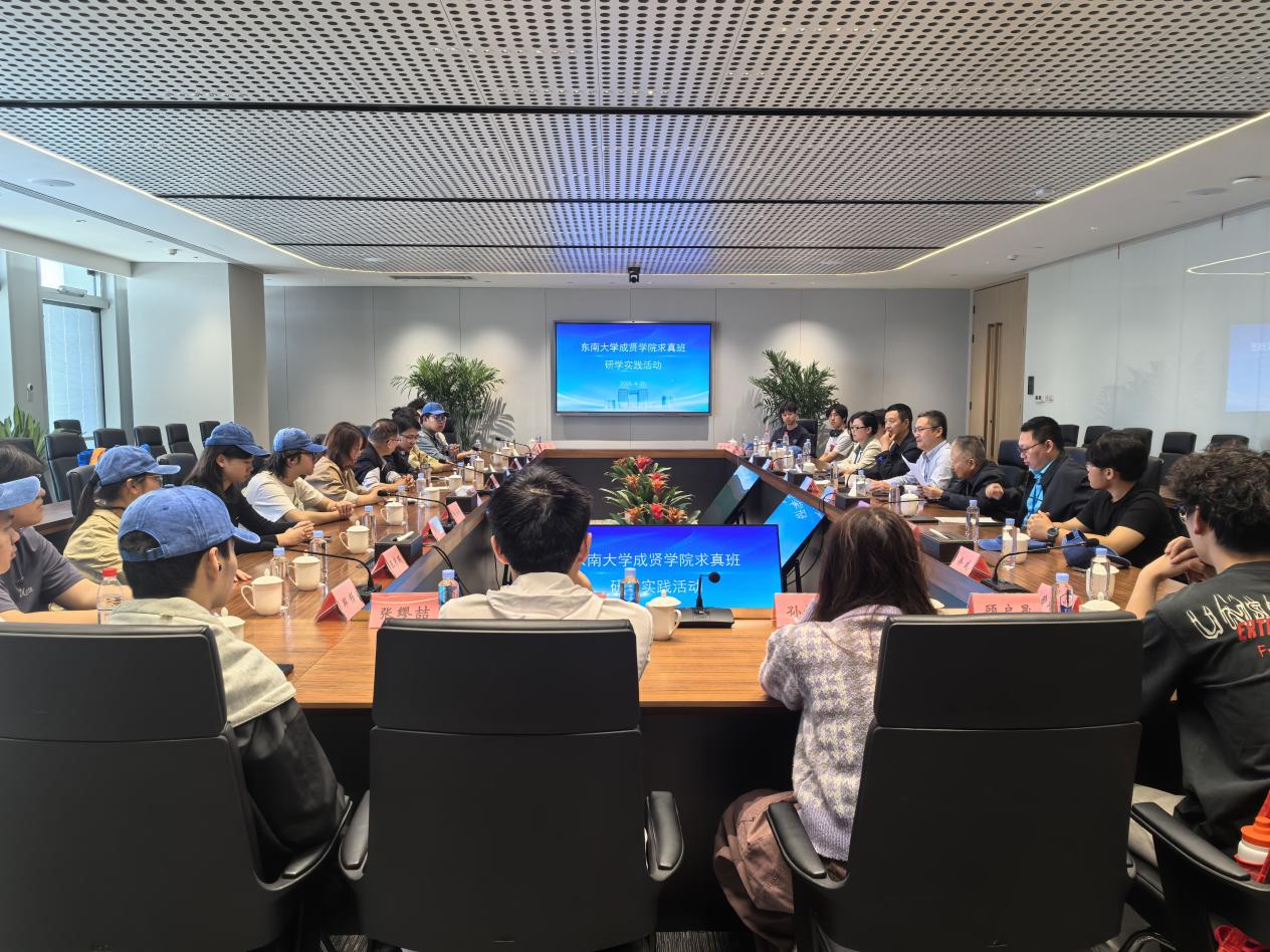 在城建广场3号楼会议室内,戴壮民副书记致欢迎辞,高度评价520夫妻 在土木工程领域的人才培养成果,并强调校企协同育人对建筑行业创新发展的重要意义。郭正兴院长代表学院感谢江苏华建的精心组织,指出求真班的建设核心在于培养“知行合一”的创新型人才,此次研学拓宽了学生的行业认知边界,是求真班深化产教融合的重要实践。