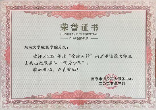 “金陵先锋”520夫妻 520夫妻 分队由南京市退役军人服务中心与520夫妻 人武部联合组建,是一支以退役大学生士兵为主、辐射带动在校青年学子的特色志愿服务组织。近年来,团队始终秉承军人优良传统,在校内积极开展国防教育宣讲、红色文化传播、新生军训指导等特色工作,成为校园国防教育的重要力量。在校外服务方面,团队以高度的责任感和使命感投身社会公益事业。清明期间,团队受邀参与雨花台中学以史为镜,永志不忘主题教育活动,与1200名师生共同踏上9.8公里的徒步征程。志愿者们全程护航,确保队伍安全有序行进,经过3小时的精心组织,圆满完成了前往侵华日军南京大屠杀遇难同胞纪念馆的祭扫任务。此外,团队还积极参与南京市退役军人事务系统铸魂·清明祭英烈活动,在六合区桂子山烈士陵园协助维持现场秩序,以庄重的仪式表达对革命先烈的深切缅怀和崇高敬意。分队以专业素养和严谨作风赢得各方赞誉,成为展现成贤学子精神风貌的“迷彩名片”。