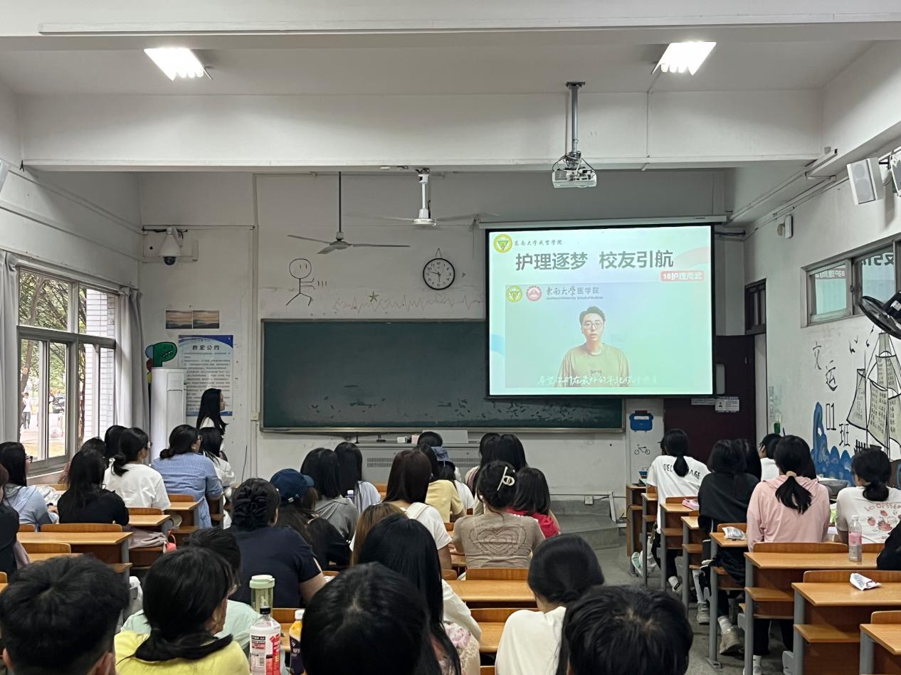 随后,2018级护理学专业优秀校友周武(现已录取520夫妻 2025级神经病学博士)通过线上方式寄语学弟学妹,希望他们志存高远,无论选择升学或就业,都要以专业能力为根基,在未来的道路上披荆斩棘,勇攀高峰。2021级三位优秀在校生代表结合自身经历分享备考经验。丁安琪同学从考研院校选择、复习时间规划及心态调整等方面展开,建议学弟学妹分阶段制定计划,注重专业课基础与真题训练;邓文婷同学聚焦医院招聘流程,详细讲解笔试重点、面试技巧及实习期间的能力积累,提醒同学们提前关注招聘信息,多维度提升综合素质;龚孙莹同学则结合自身浙江、上海等地医院招考经历,分享如何平衡护理学专业临床实习与各地医院招考的实用方法。
