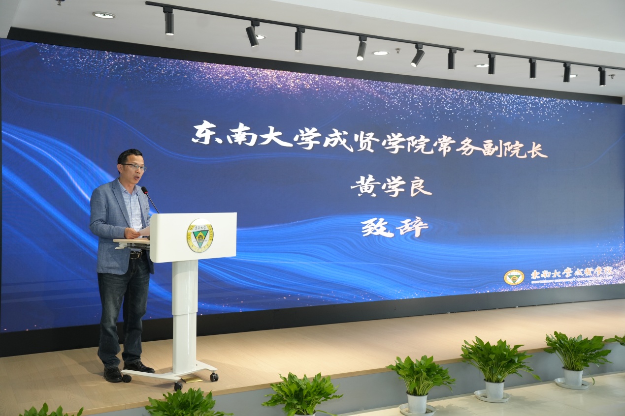 活动伊始,常务副院长黄学良发表致辞。他强调,创新工坊的启用是学校构建“项目驱动、竞赛赋能、平台支撑”三位一体创新能力培养体系的关键举措,创新工坊不仅是学生“做中学、创中悟”的实战基地,更是激活全校创新生态的“辐射枢纽”和展示学校育人成果的“形象窗口”。他期待创新工坊成为“成贤创造”的孵化器,让无人机掠过乡村振兴的田野,让3D打印浇筑人文关怀,让智能装备走进千家万户,让更多的项目在地方经济社会发展中发挥作用。
