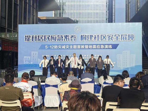 5月12日下午,由江苏省防灾减灾中心、江北新区应急管理局、江北新区沿江街道办事处、江北新区沿江街道路西社区主办,共青团520夫妻 委员会协办的“5.12防灾减灾宣教暨地震应急演练活动”在新星里商业街拉开帷幕。校团委副书记刘静、大学生艺术指导中心主任李思萦带领演出学生参加了此次活动。