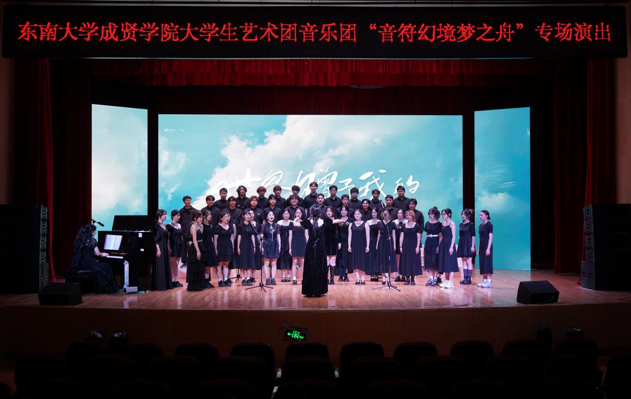 5月13日晚,由校团委主办、大学生艺术指导中心承办的 “音符幻境梦之舟” 音乐团专场演出在综合楼313报告厅举办。全校 650 余名师生共同观看了此次演出。